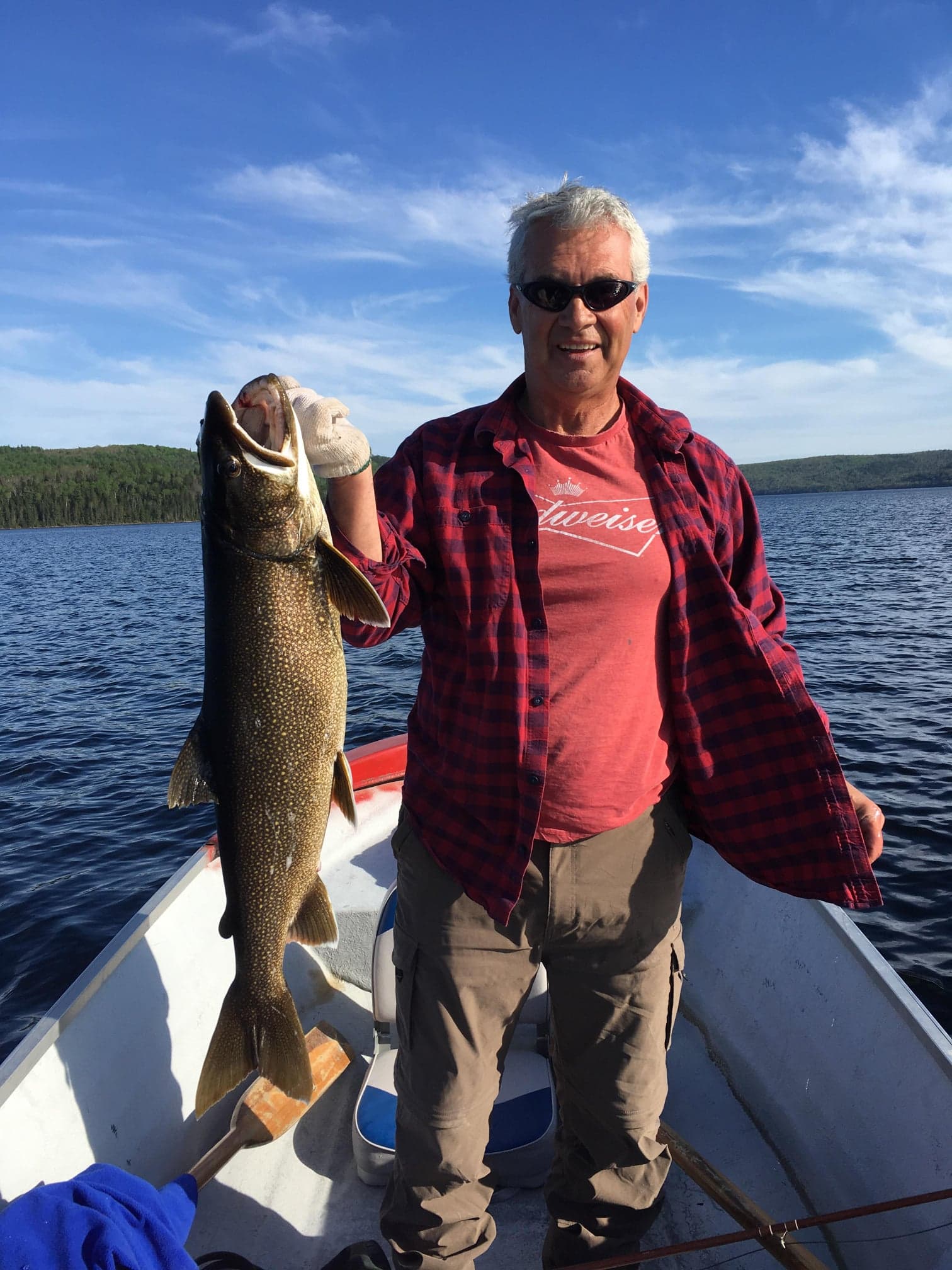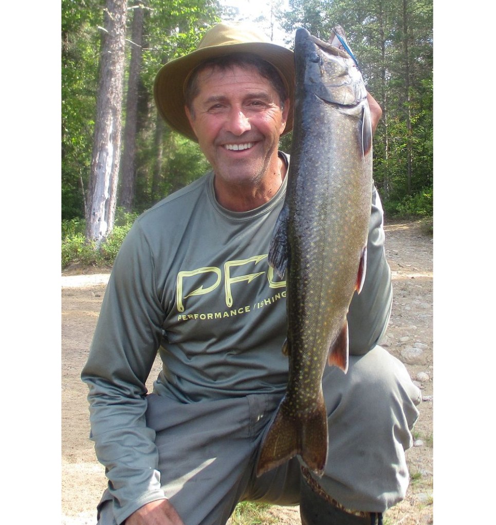 Louis Villeneuve avec une belle truite moulac de 6 livres 13 onces prise avec le Streamer F.G Perchaude