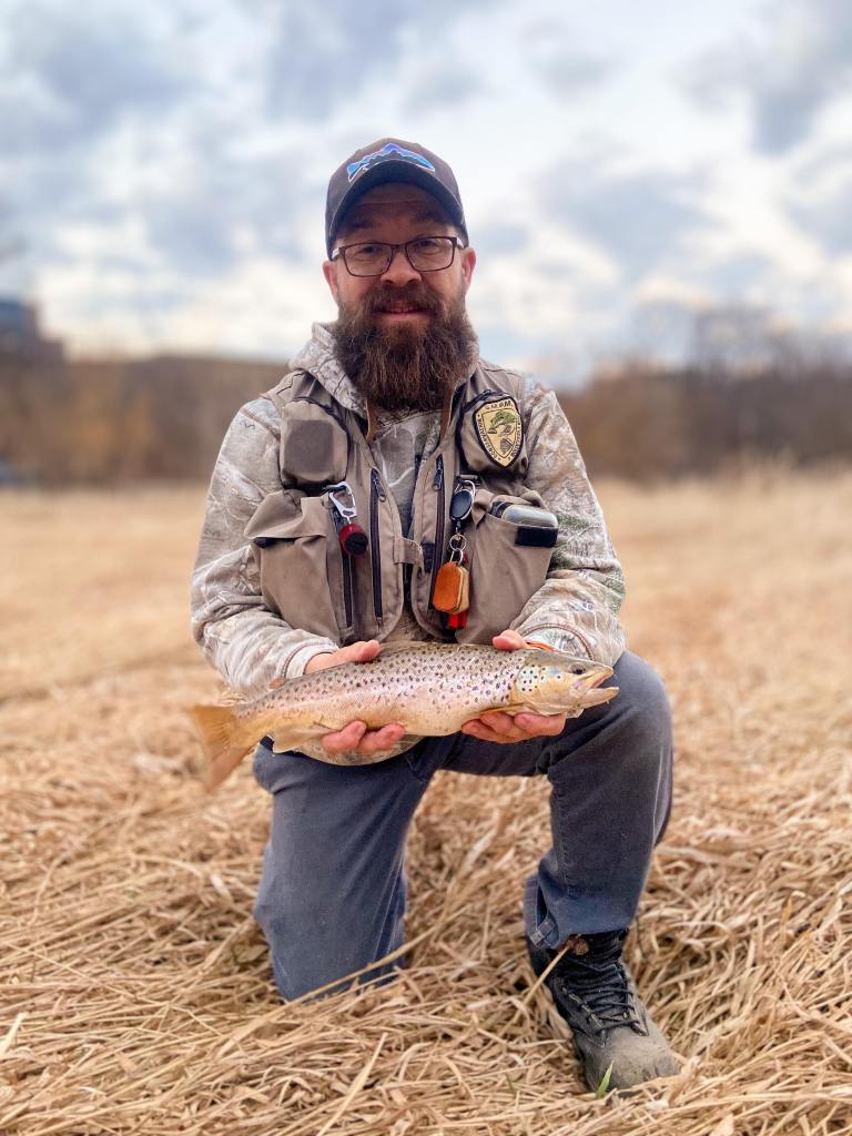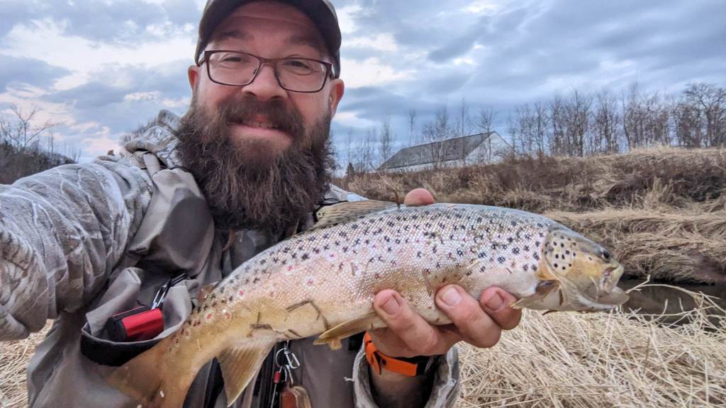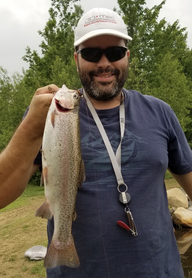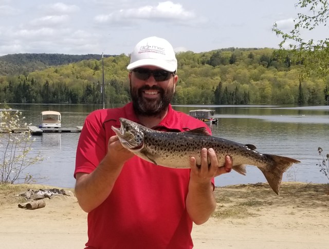 Martin Provencher de Pointe du Lac très heureux de cette capture d’une truite mouchetée de plus de 2 livres prise avec la Dracula Matuka orange