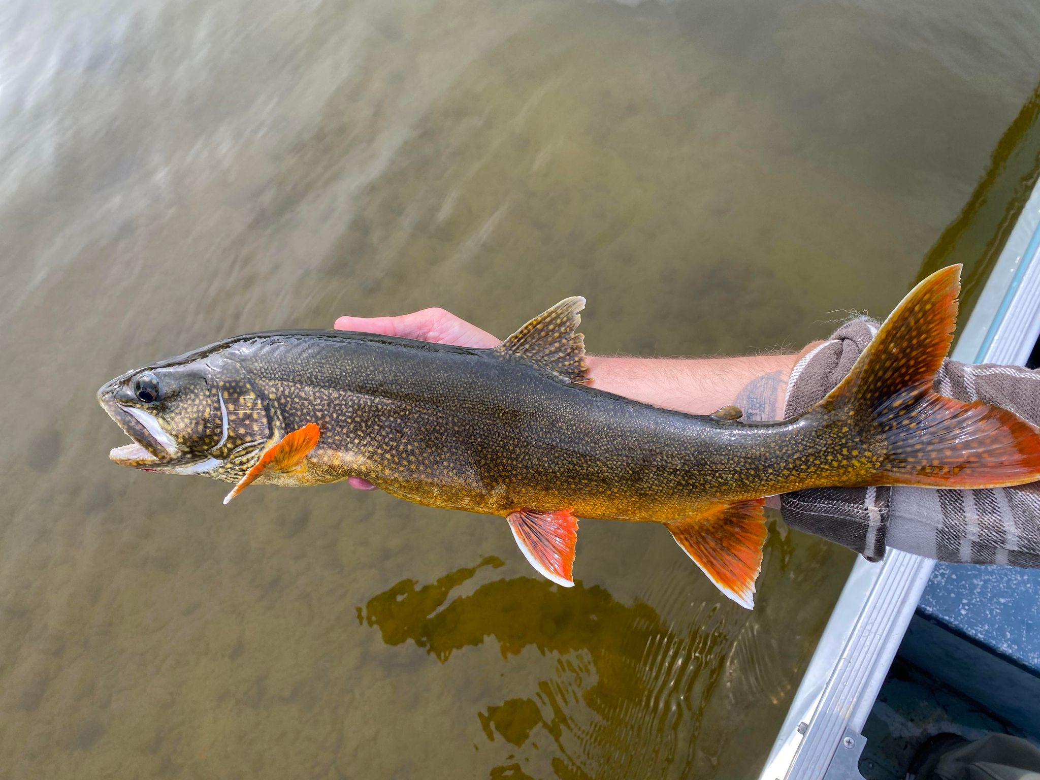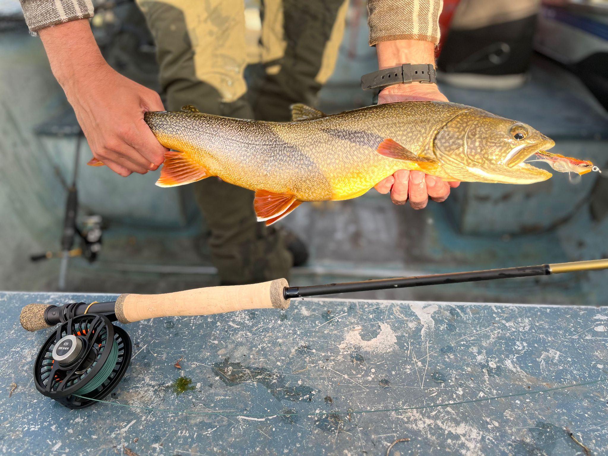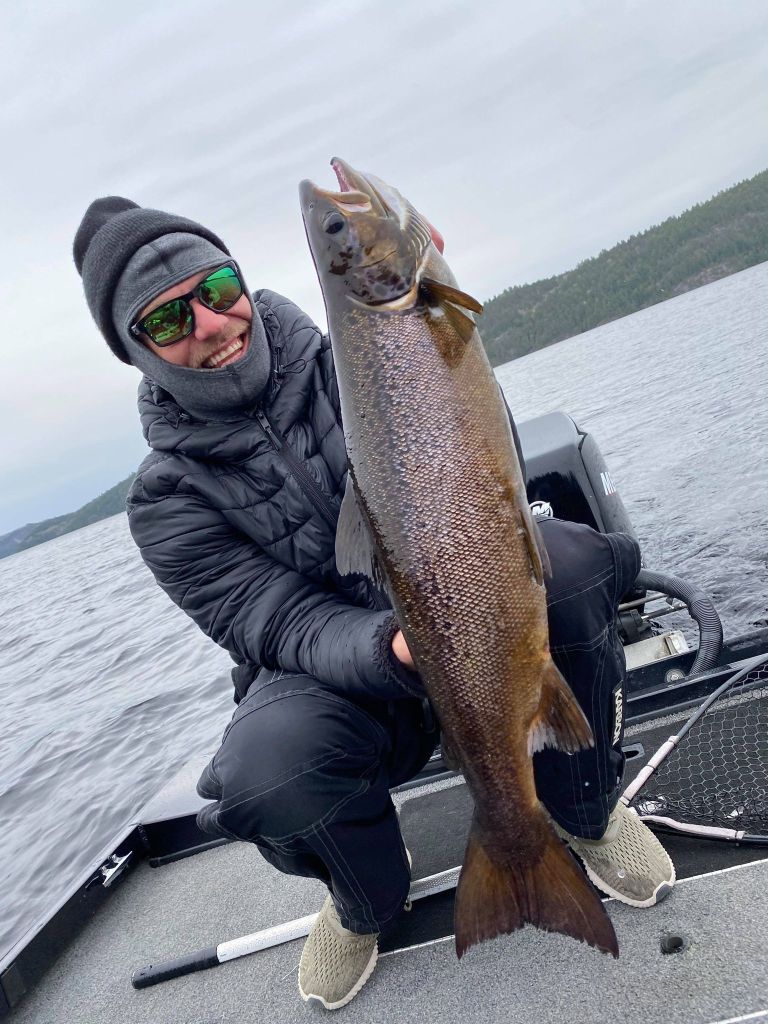Première truite Grise de 3 livres 1/2, pêchée