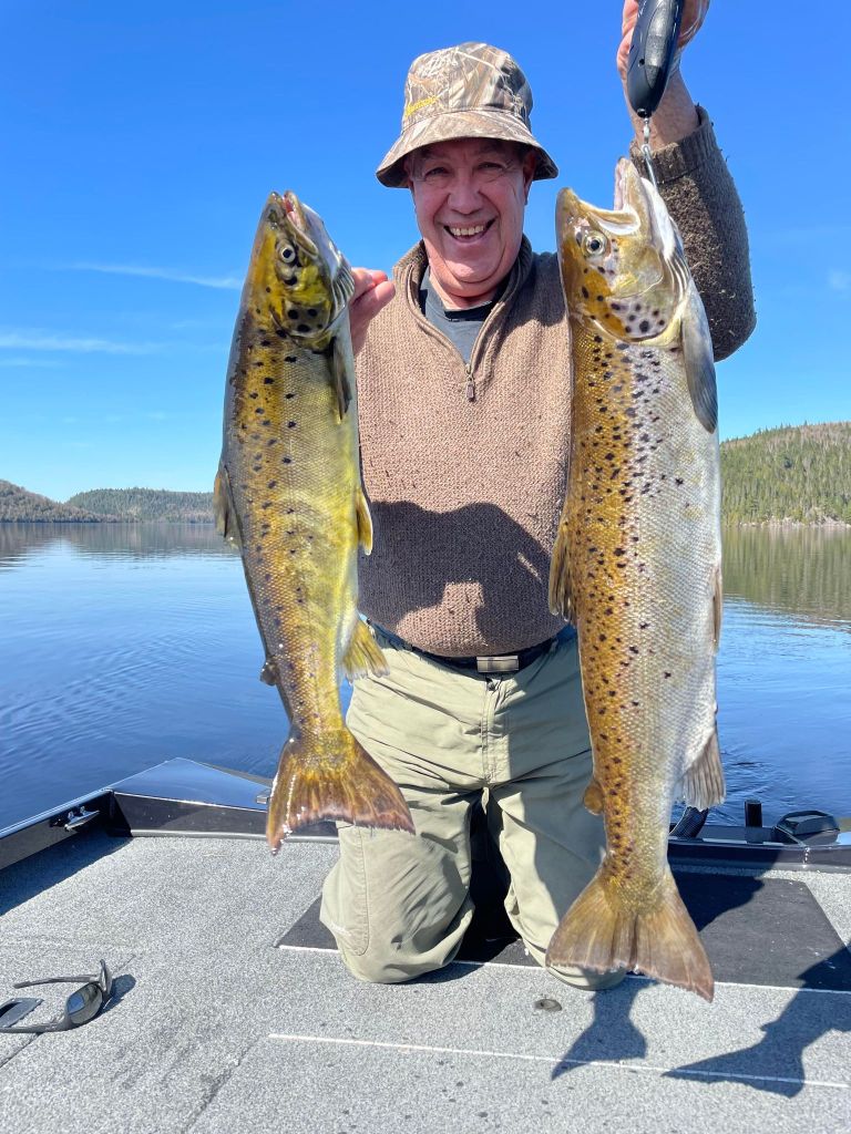 Charles Drolet Villeneuve a capturé ces deux belles ouananiches avec le streamer Claire -Y-Belle directement du Labrador