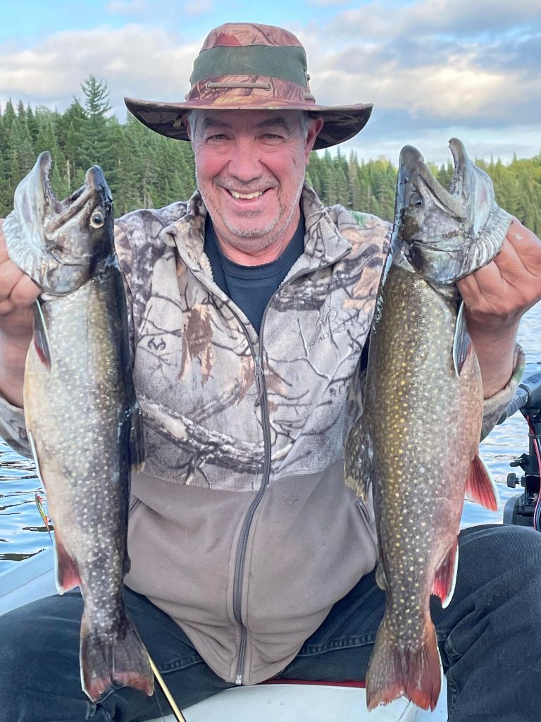 Francois avec un Brochet de 17 livres et Guy avec une truite grise de 6 livres 3/4