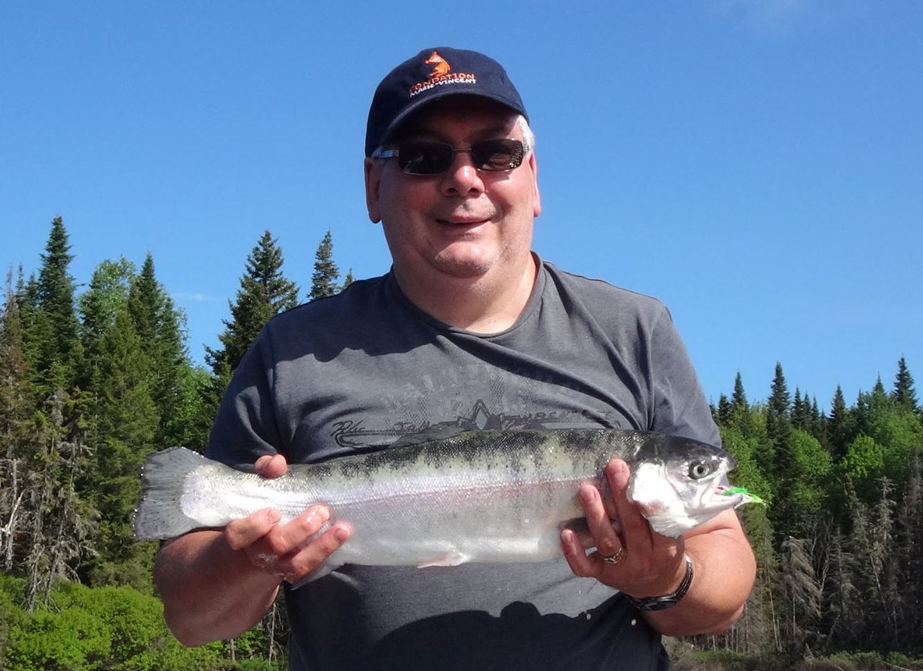 Jean-François Loubier avec une ouananiche de 19 pouces prise a la mouche avec le streamer tandem Walter du Sorcier
