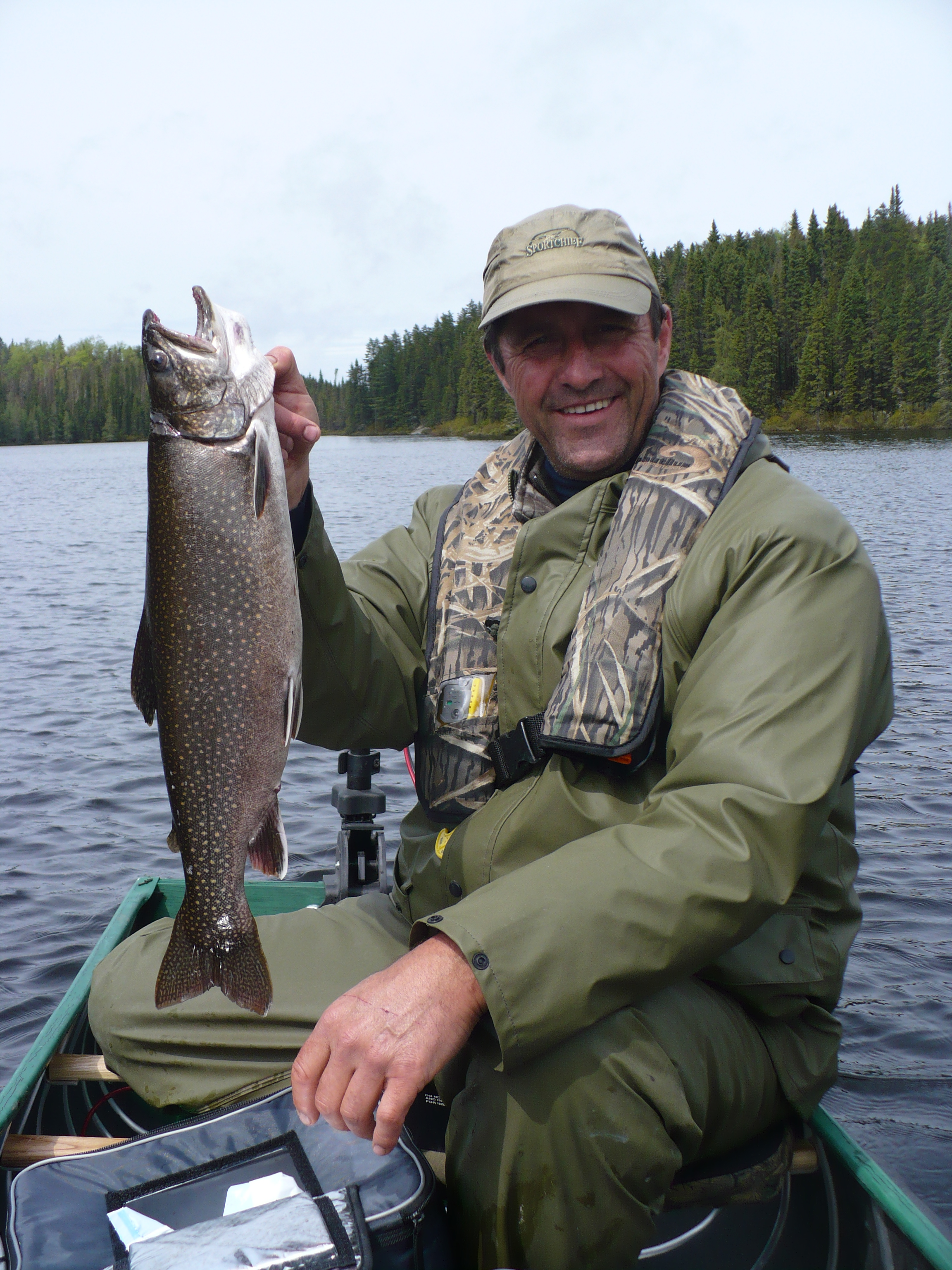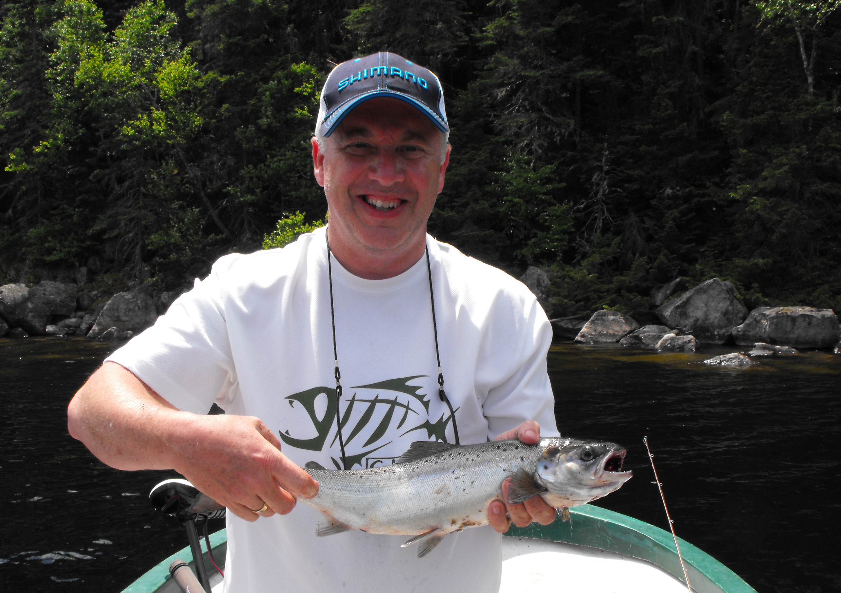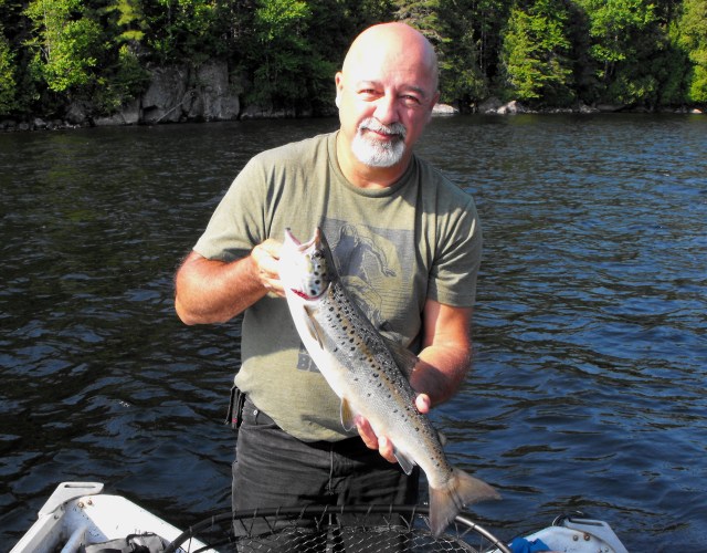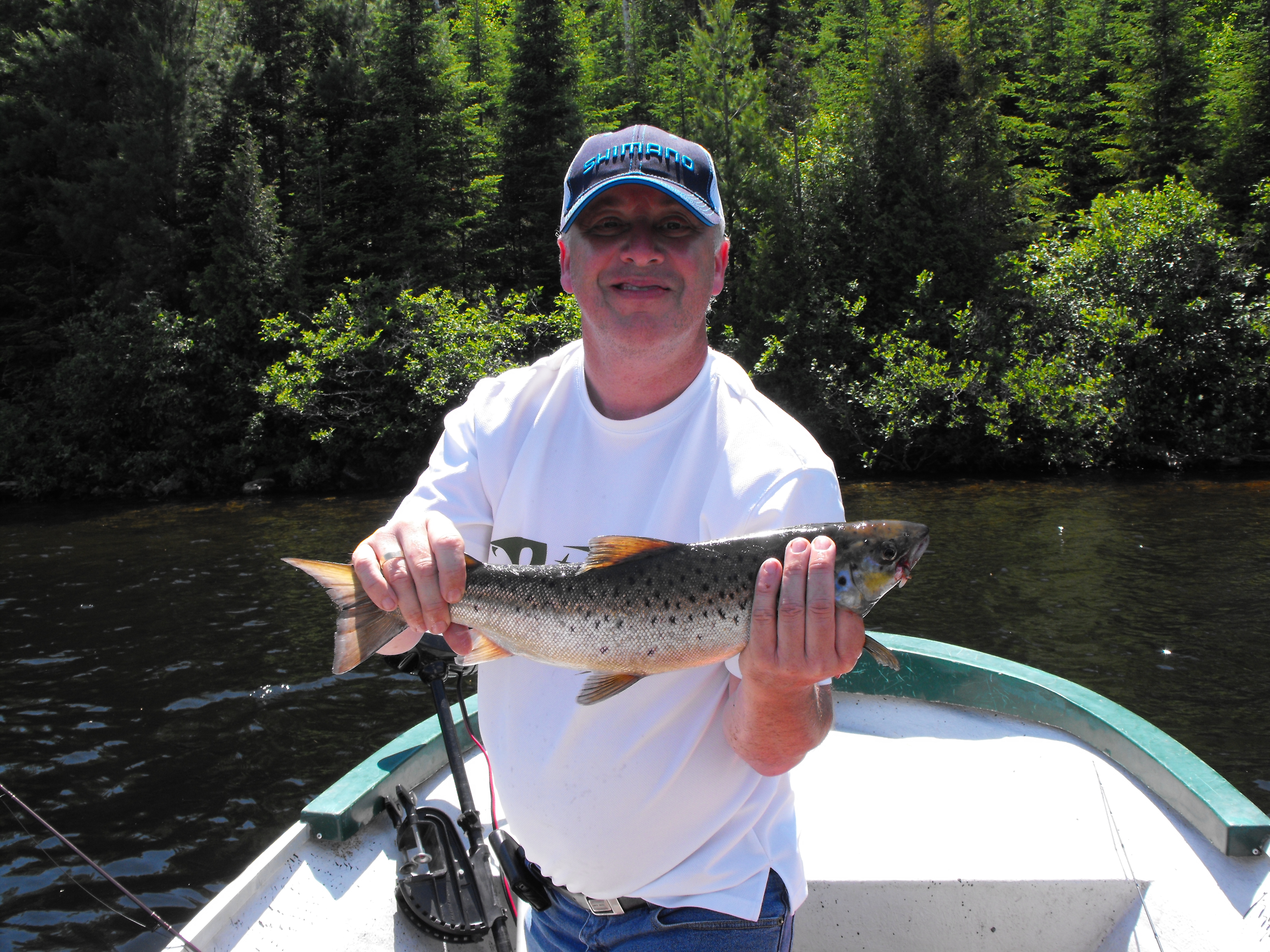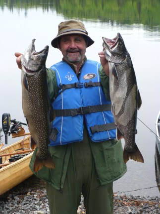 et Alain tout heureux sa premiere ouananiche bravo Alain