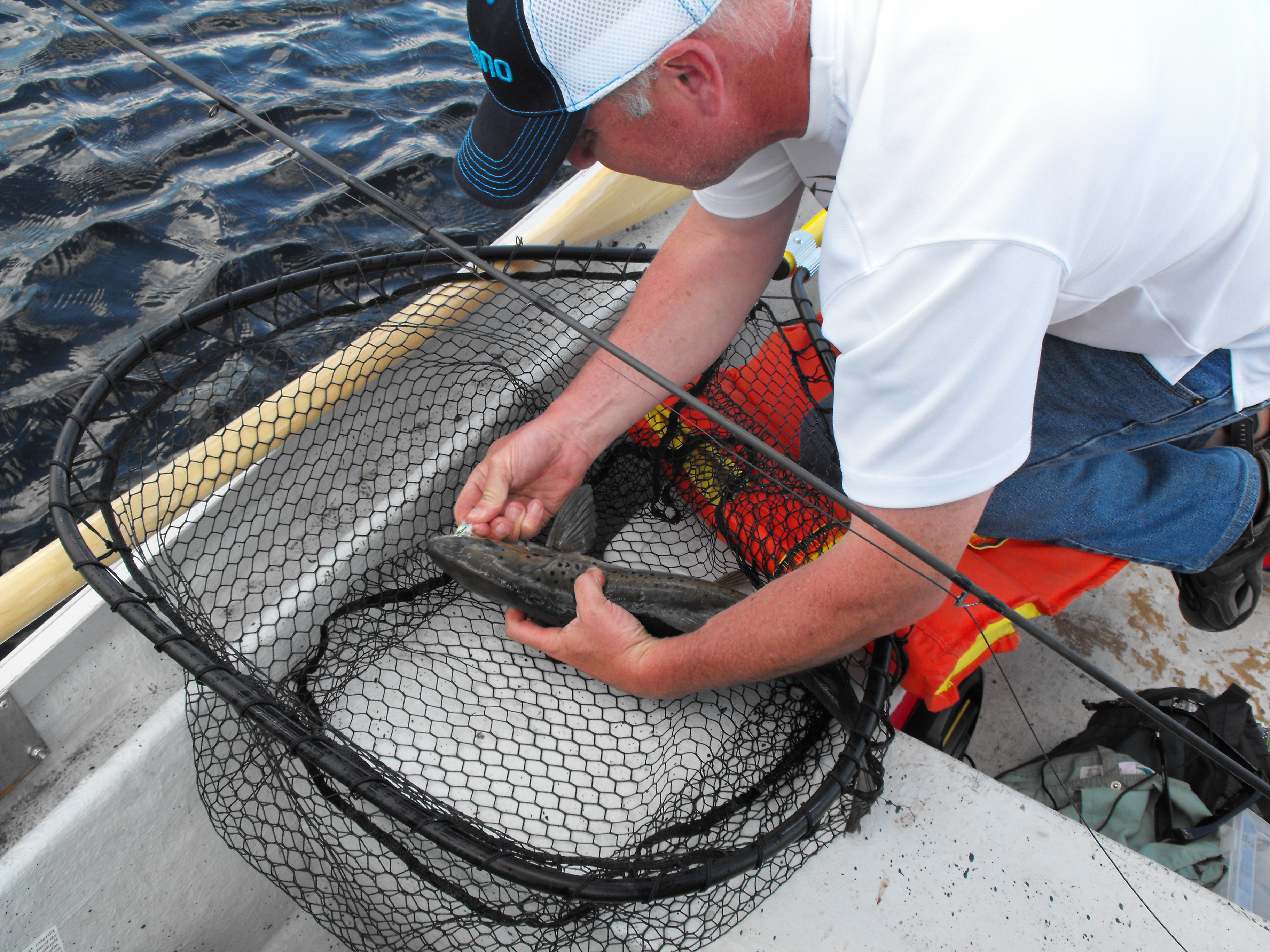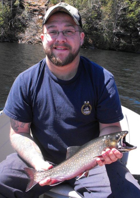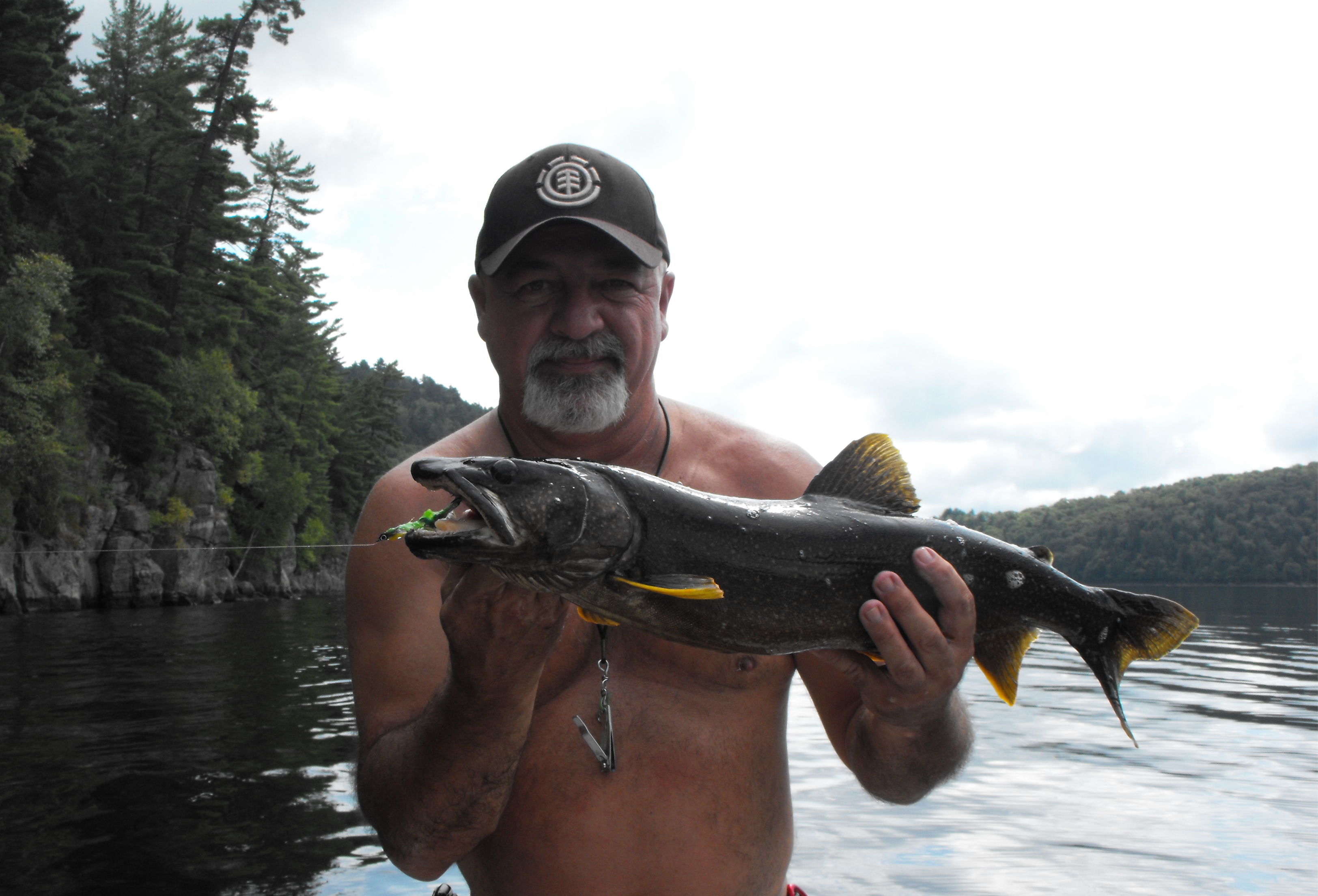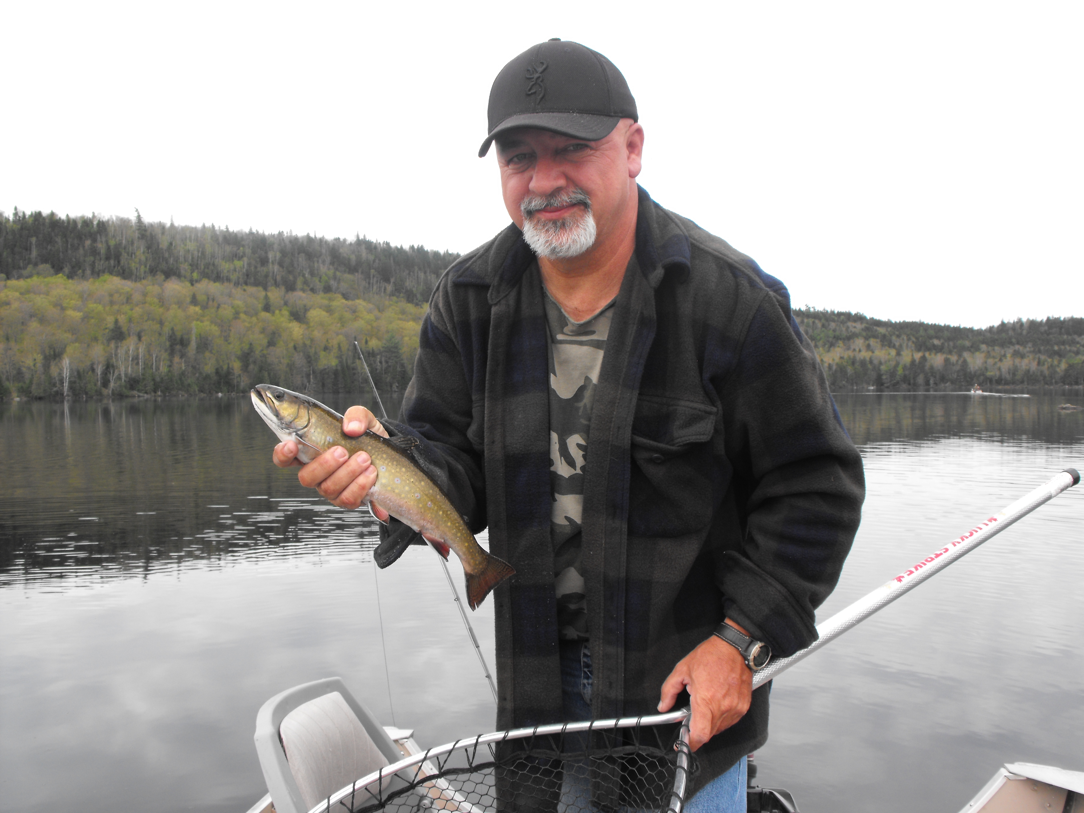 et Alain tout heureux sa premiere ouananiche bravo Alain