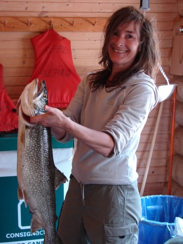 La conjointe de Robert Lacerte ,Caroline Joyal se débrouille très bien avec une canne à mouche. Elle a capturé cette magnifique truite grise de 8 livres 3/4 , 30 pouces, avec une Claque tandem. Félicitation! de quoi faire rêver plusieurs pêcheurs.