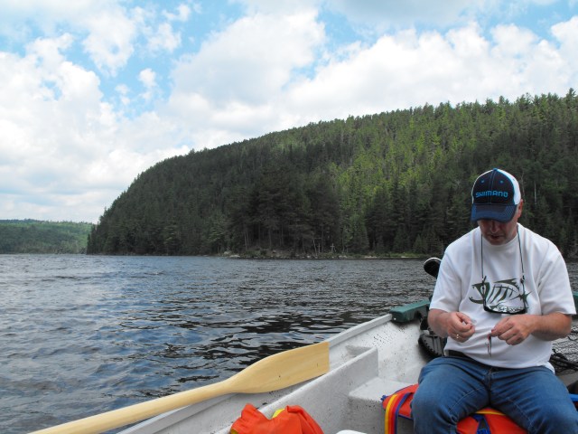 Ces bons pêcheurs de Yamaska, Martin Bédard(sur la photo) et Martin Anctil ont ensorcelé les salmonidés du Lac Sorcier avec ce fameux streamer: La Walter du Sorcier. Ils sont maintenant accros de ce streamer.