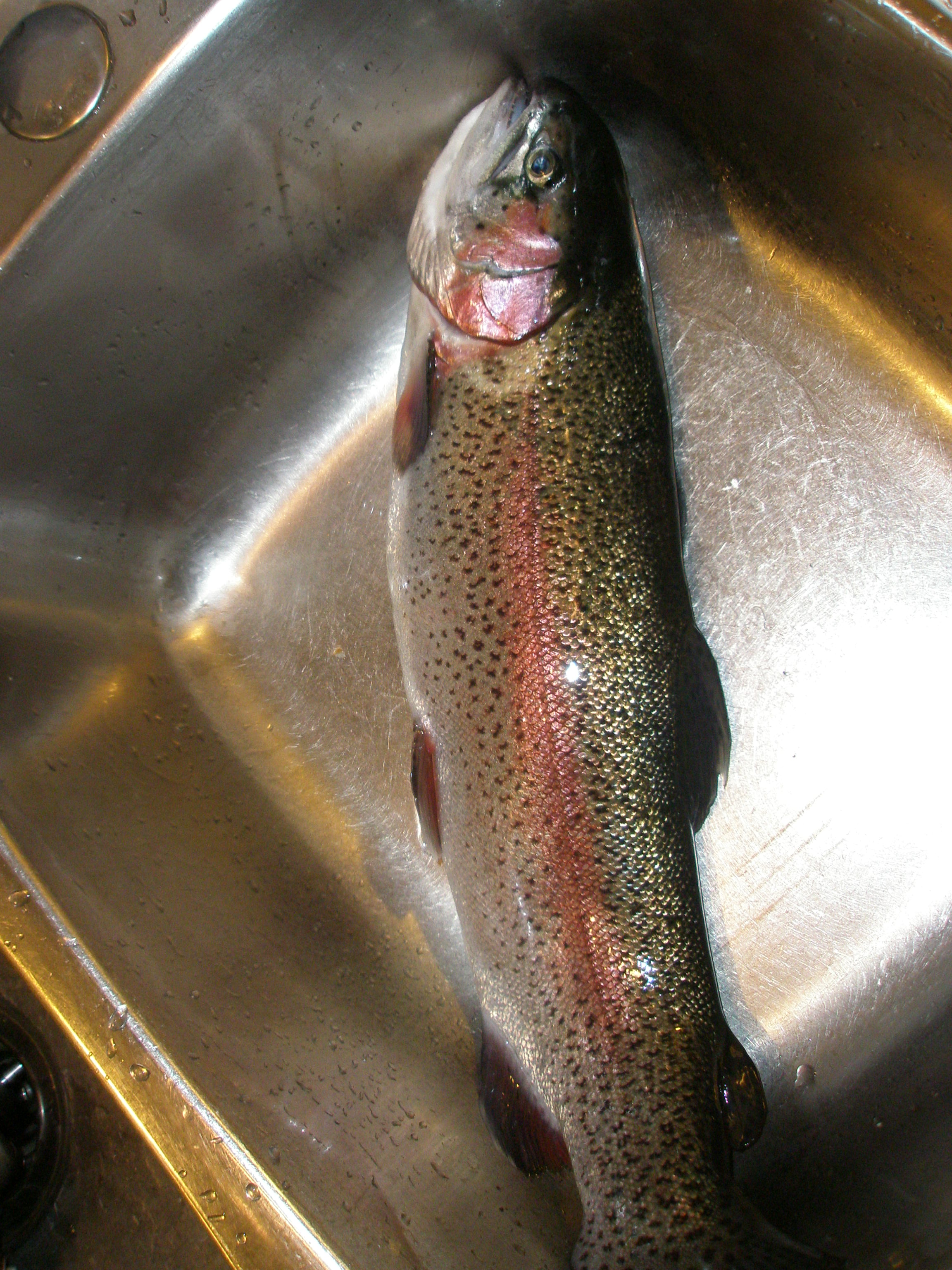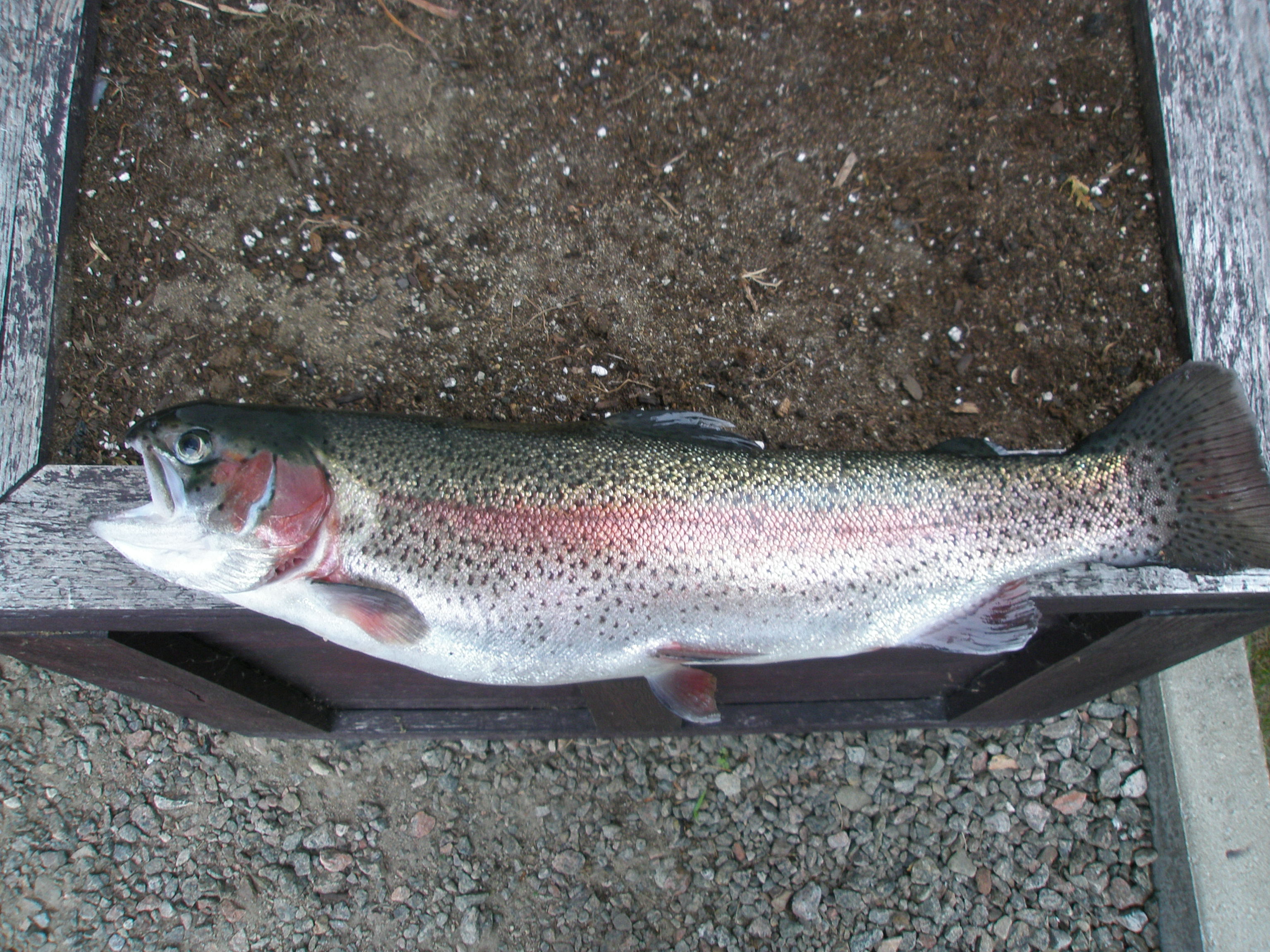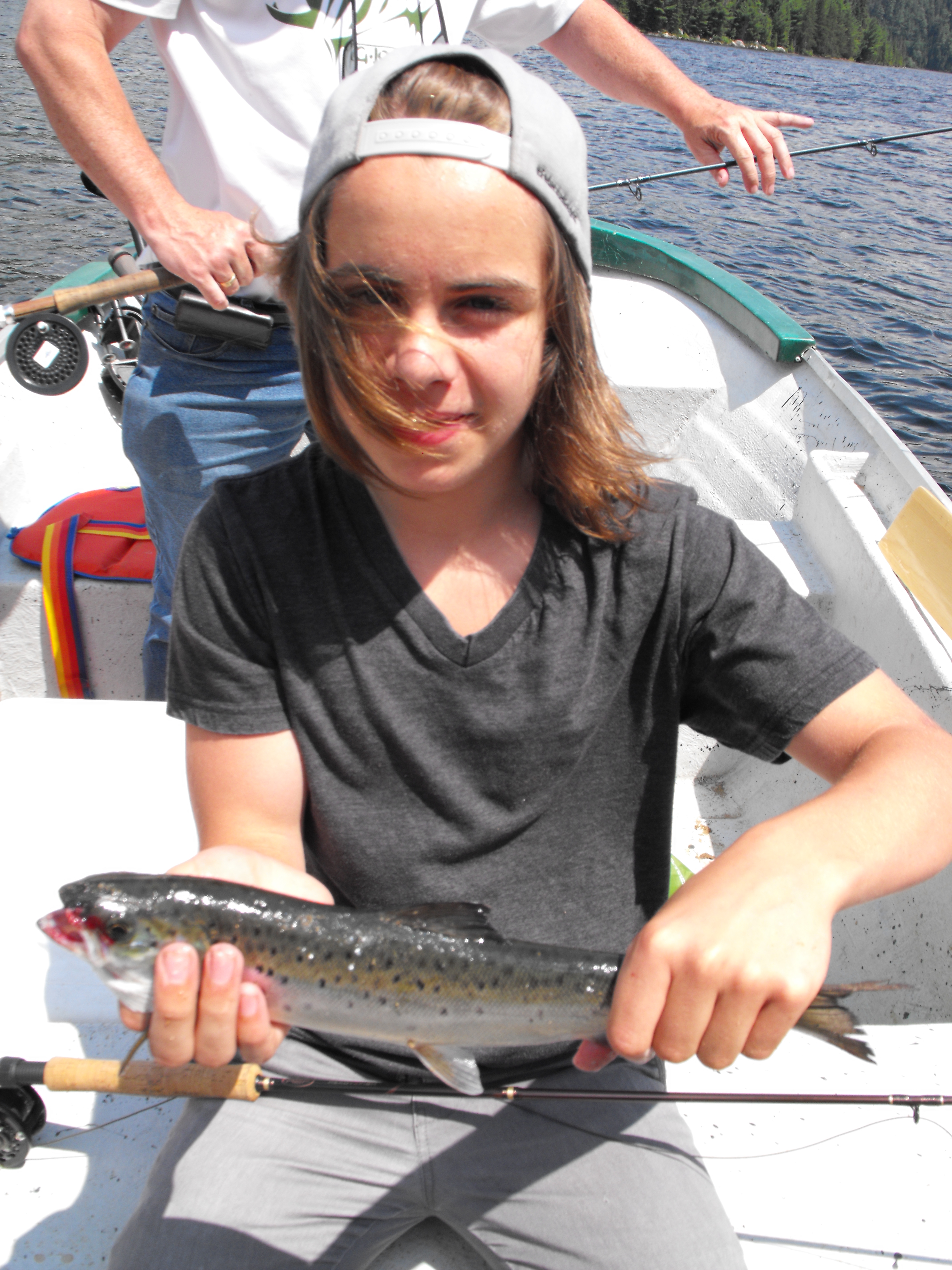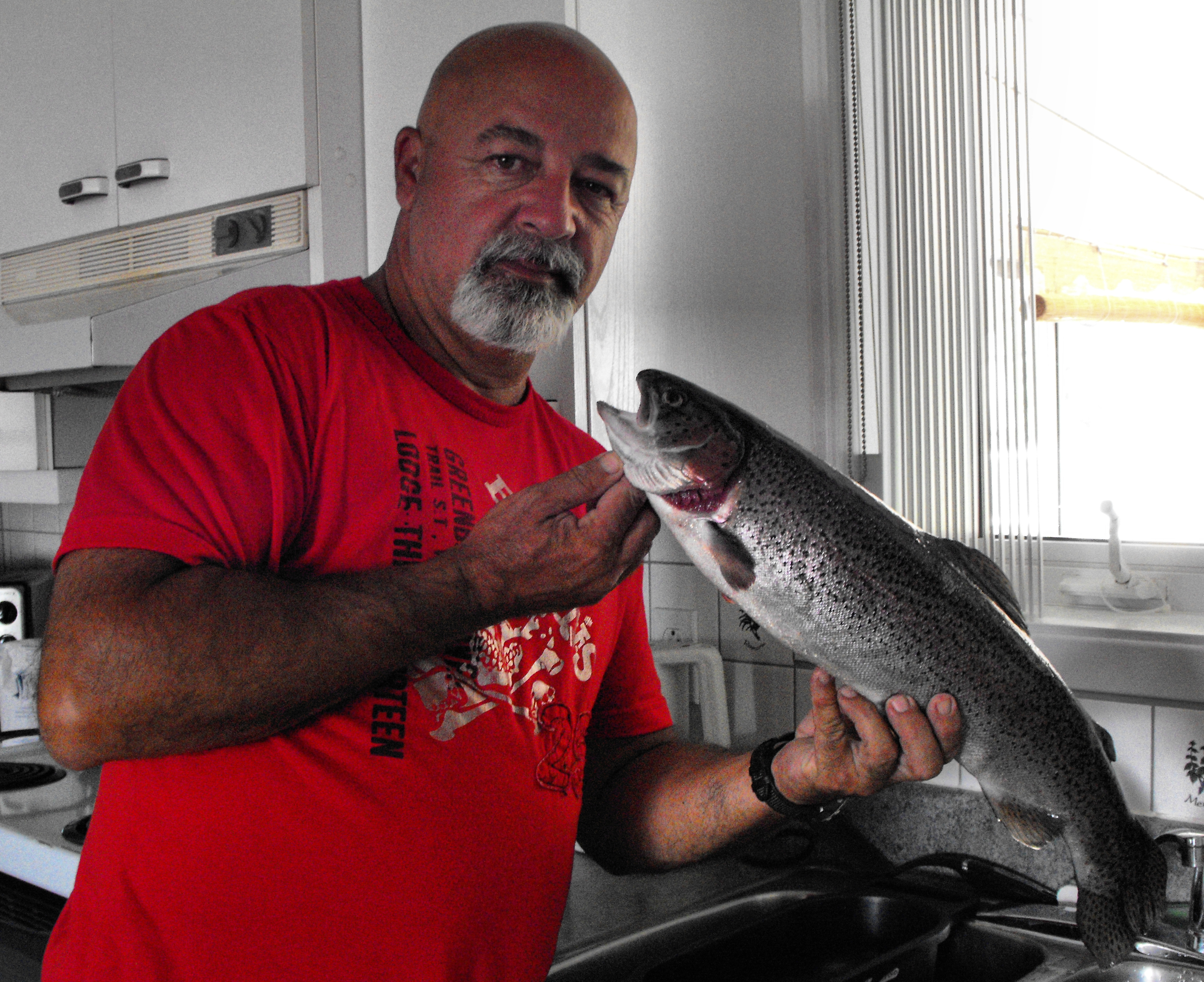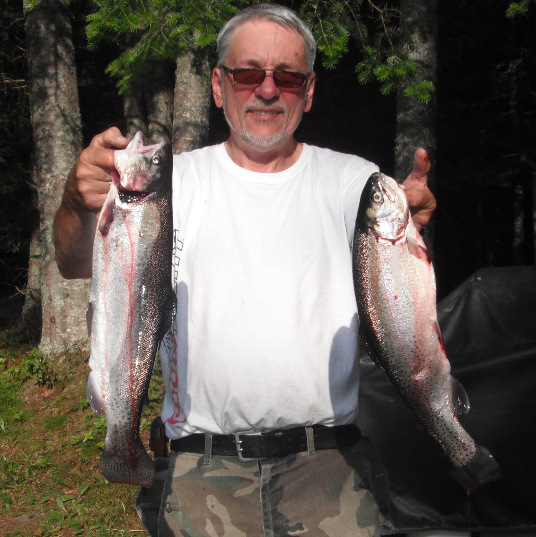 avec ses deux truites arc-en-ciel de 4.25 livres et 4 livres.