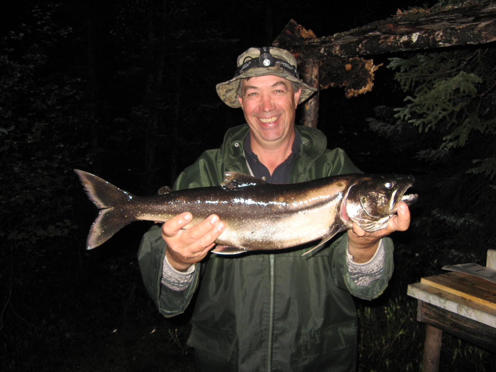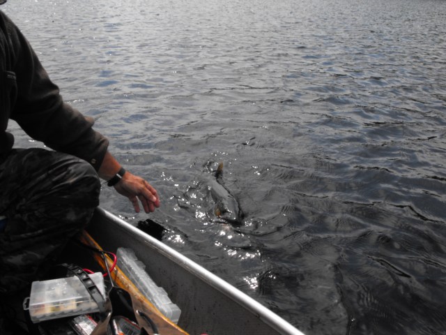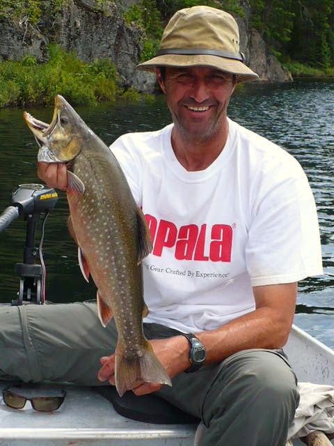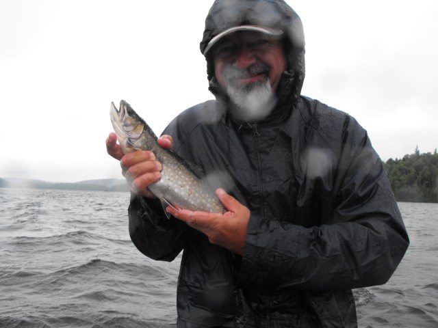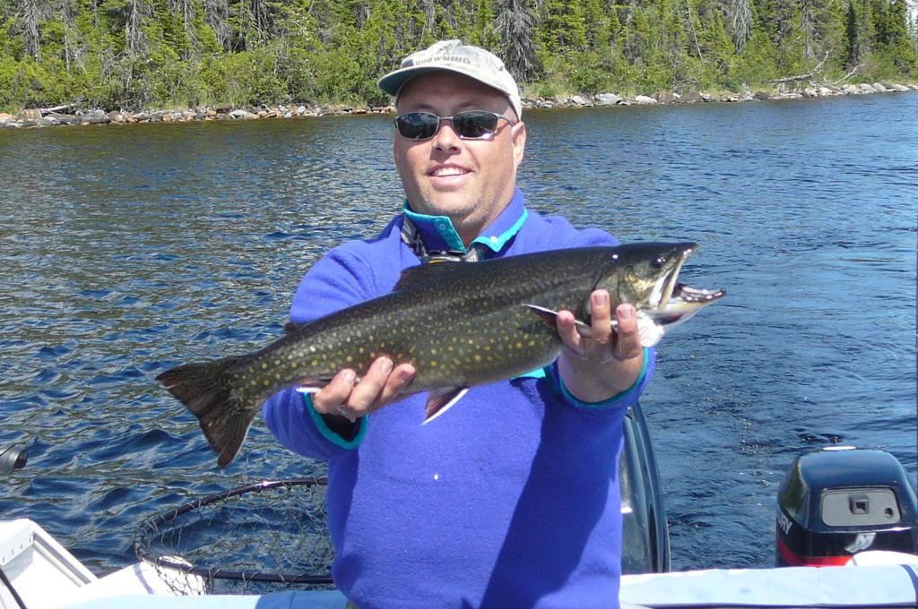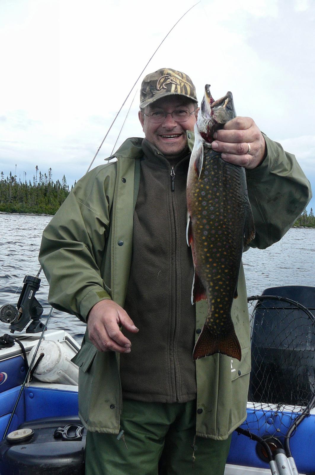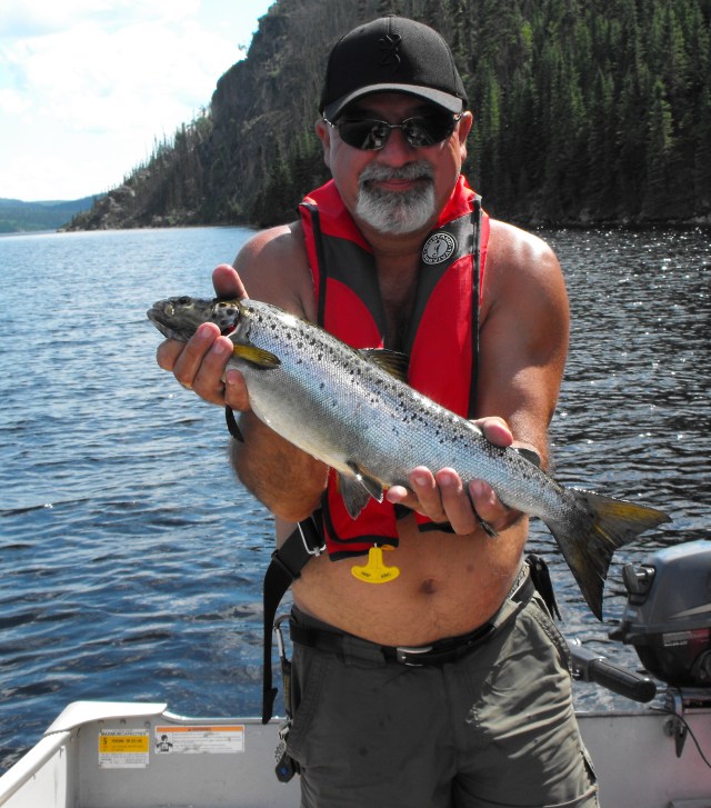 Jonathan tres heureux de ce faire photographier avec cette ouananiche capturée avec la Walter du Sorcier une création en honneur de sont grand père qui etait guide de pêche sur ce fameux lac Sorcier
