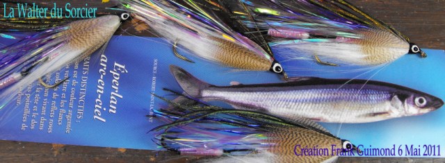 Je découvre maintenant que tu a créé un nouveau streamer, « Walter du Sorcier », dans le but spécifique de récolter des ouananiches du célèbre lac Sorcier de la réserve faunique gouvernementale de Mastigouche, gérée par la Société des établissements de plein air du Québec (SEPAQ). Je suis estomaqué de la ressemblance de la « Walter du Sorcier » avec les éperlans arc-en-ciel qui constituent la nourriture des ouananiches. Je te prédis que la « Walter du Sorcier » deviendra célèbre et reconnue dans le temps de le dire auprès des adeptes de la pêche à la mouche qui l’utiliseront pour récolter des ouananiches dans les grands lacs du Québec où l’on retrouve les merveilleux saumons d’eau douce! Je pense, ici, au lac Saint-Jean, au lac Memphrémagog, au lac Massawippi, au lac Tremblant…. et à bien d’autres! La « Walter du Sorcier » sera bientôt connue aussi dans les États de la Nouvelle-Angleterre où les pêcheurs à la mouche recherchent les ouananiches.